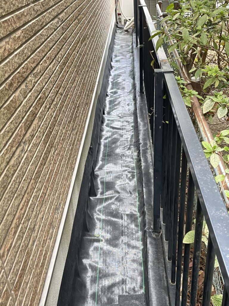 お客様から「狭くて入れない所の草取りと防草シートをしてもらえますか?」