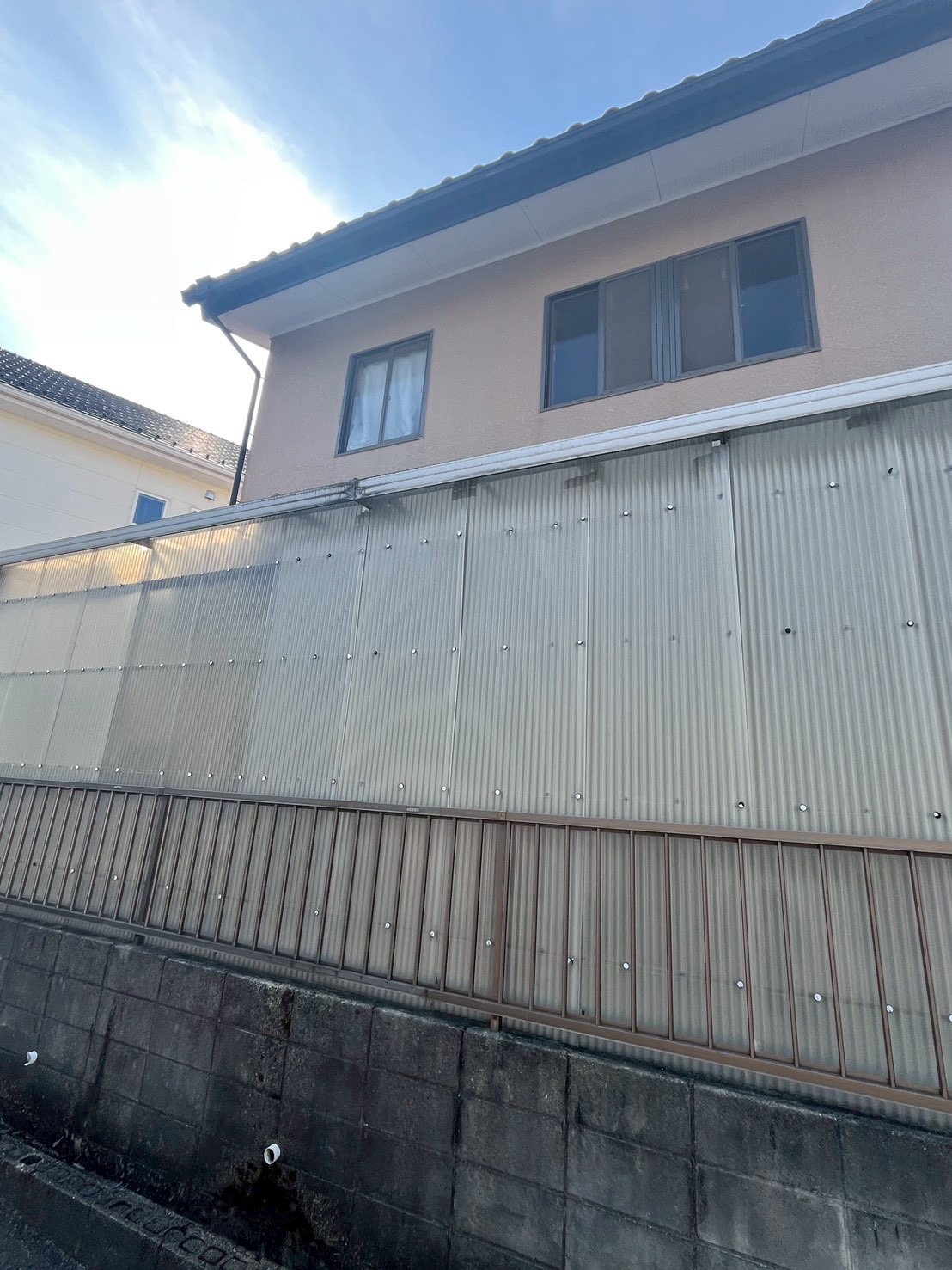 先日の強風🌬️で 2階の波板が『バリバリバーン💥』って 凄い音がして剥がれて飛んで行ったから 張替えて欲しいとのご依頼☎️ 今では、あまり使われていないベランダなので 今回は、解体をさせをいただく事になりました♪ 解体後の青空が気持ち良く☀️ お客様にも喜んでいただき良かったです♪ 帰る[...]2026/03/14