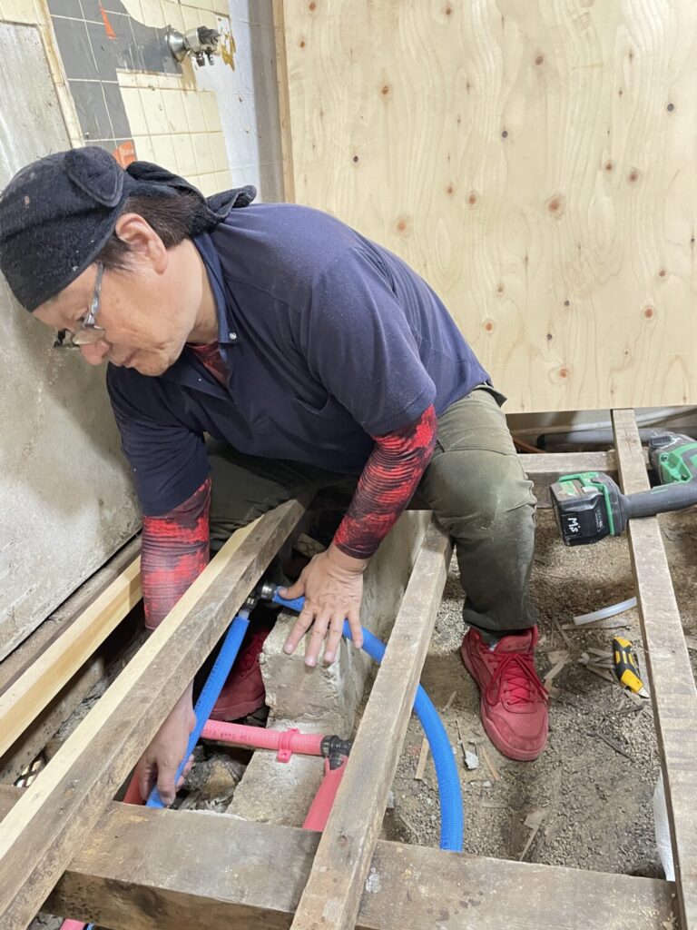 床張り上げと給水給湯配管の改改修