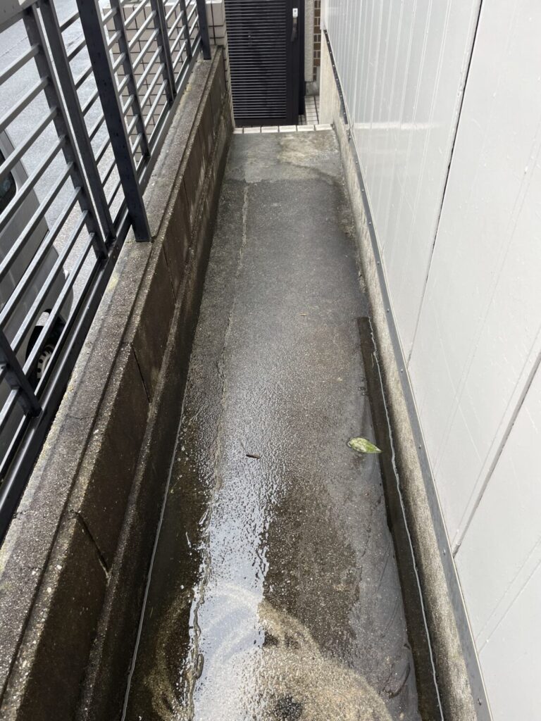 排水溝の流れが悪く高圧洗浄しても水が溜まるので、一緒に排水溝のお掃除をしてスッキリです!