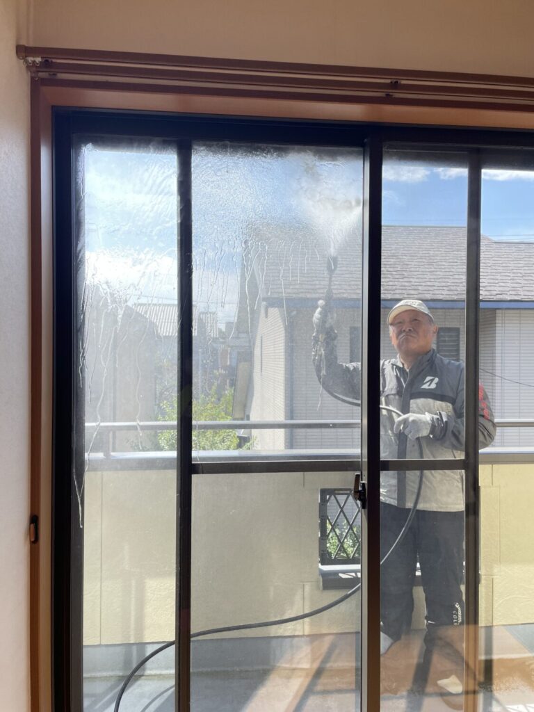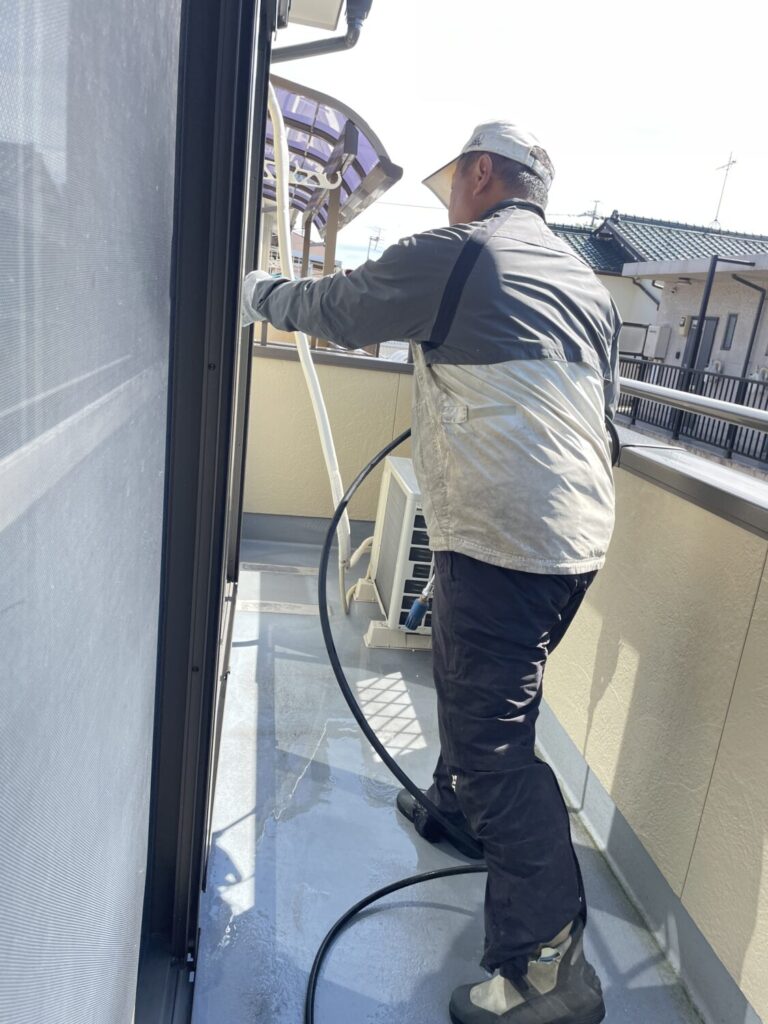 🏠「ベランダを高圧洗浄して、一緒に網戸も綺麗に