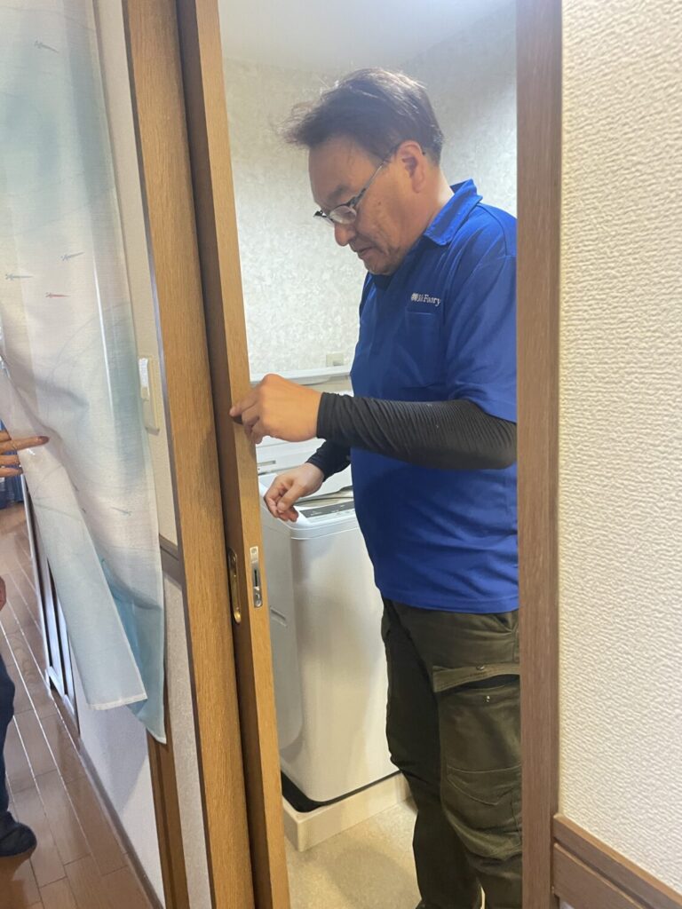 「早く来てくれて驚いた‼️し、扉を外してどうしようかと思っていたけど、直ぐになおしておもらえて