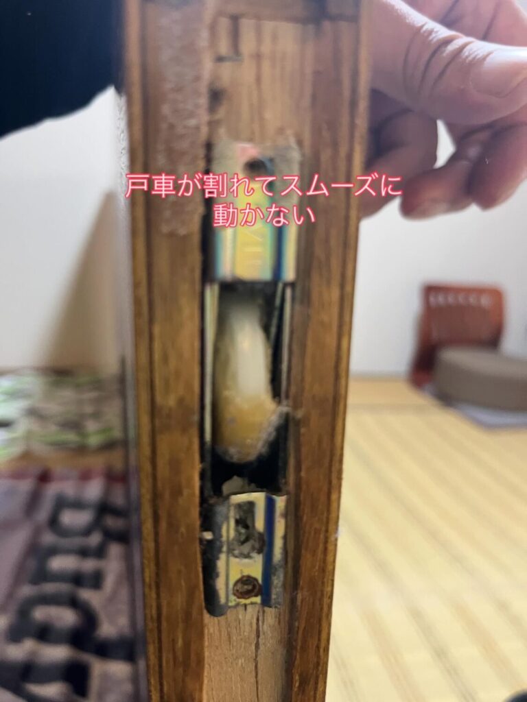 調整が出来ないし、割れていたので新しい戸車と交換させいただきました🛠️