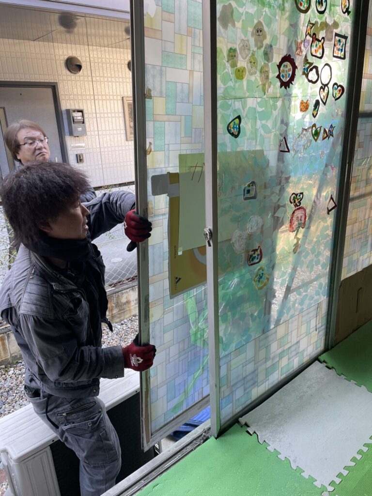 サッシを運び出し、駐車場で交換作業をさせていただき無事交換完了!